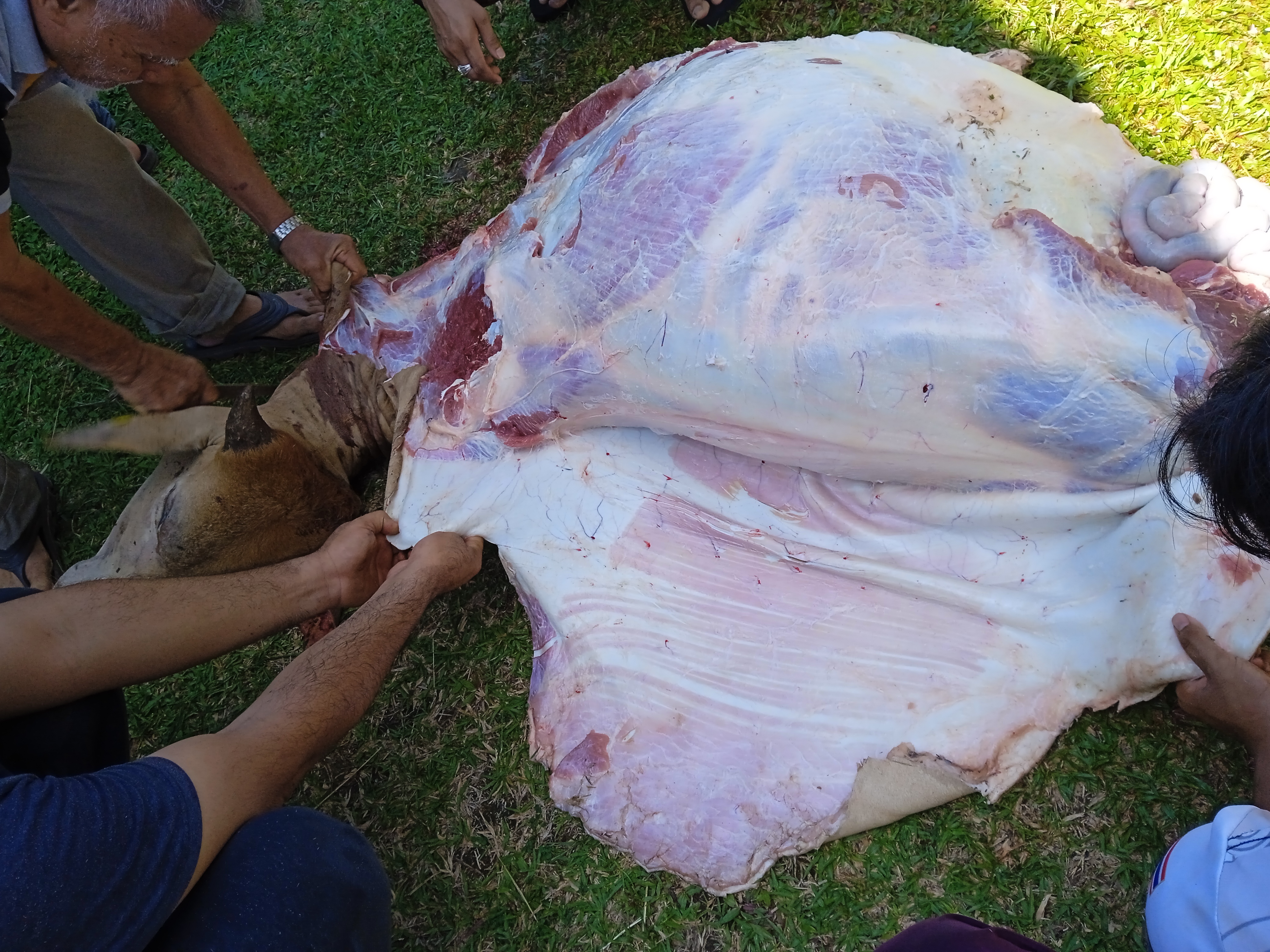 Kerbau sedang Dilapah Setelah Disembelih untuk Diagihkan Peserta-peserta dan Fakir Miskin serta orang ramai. |