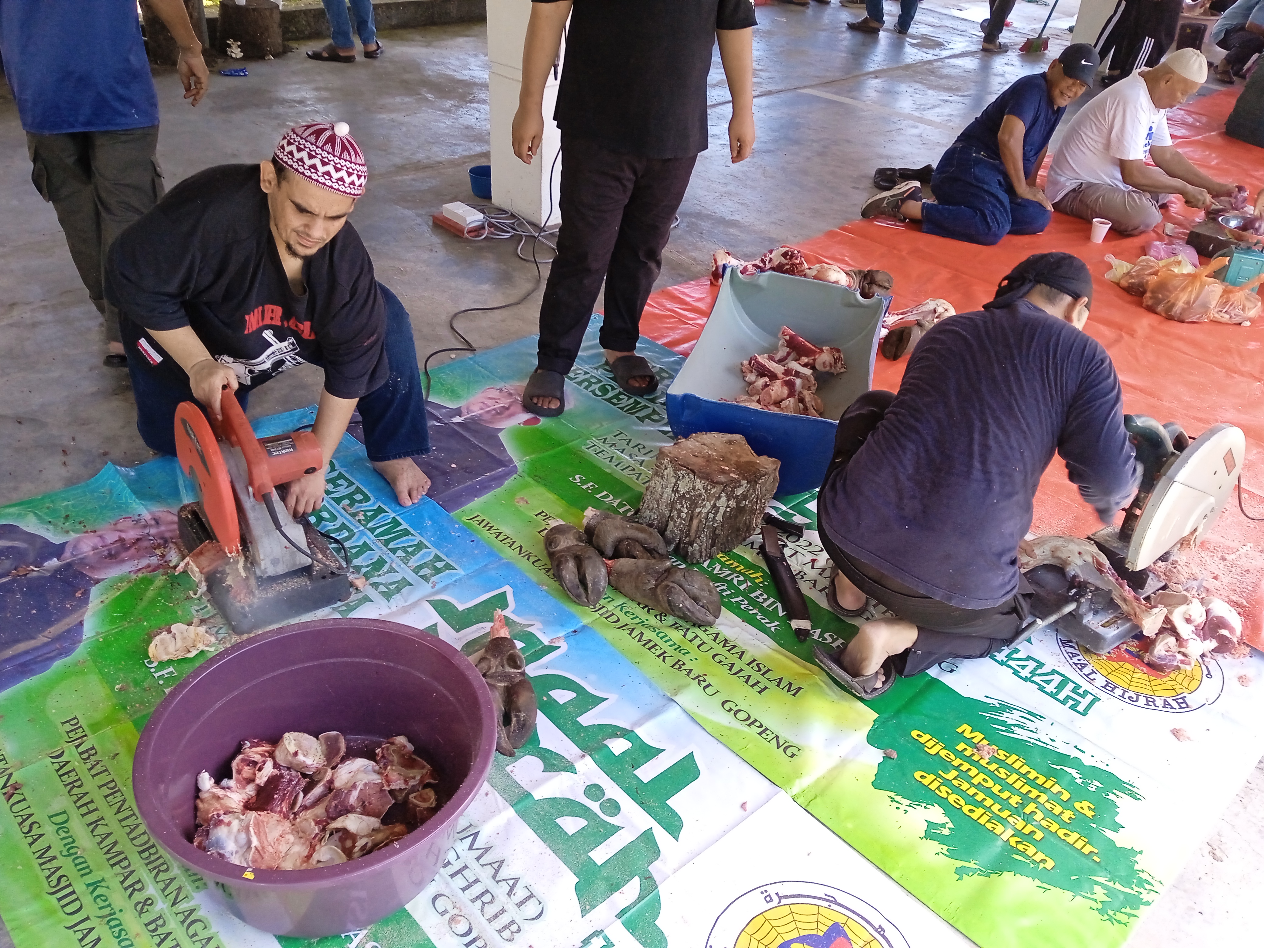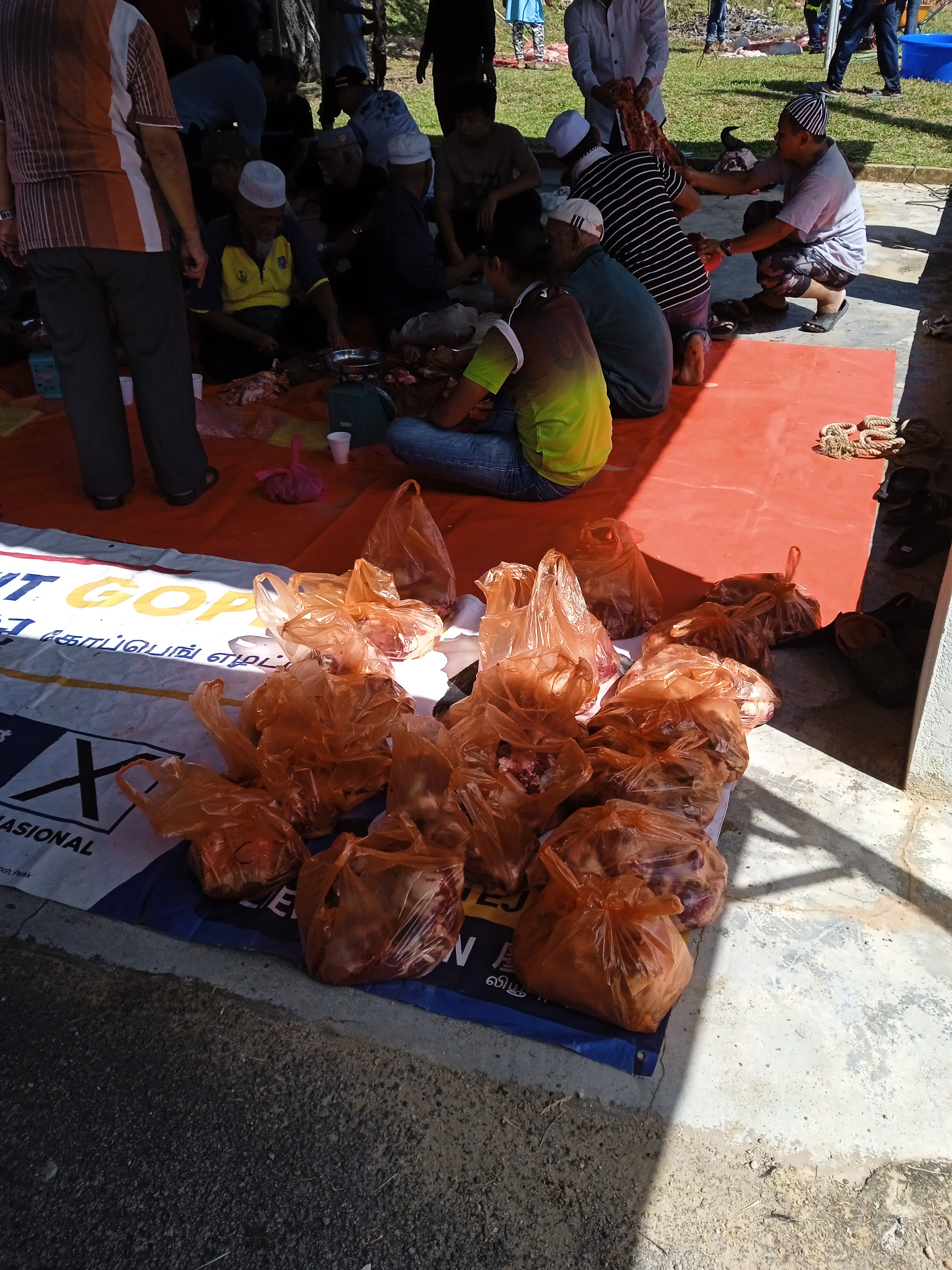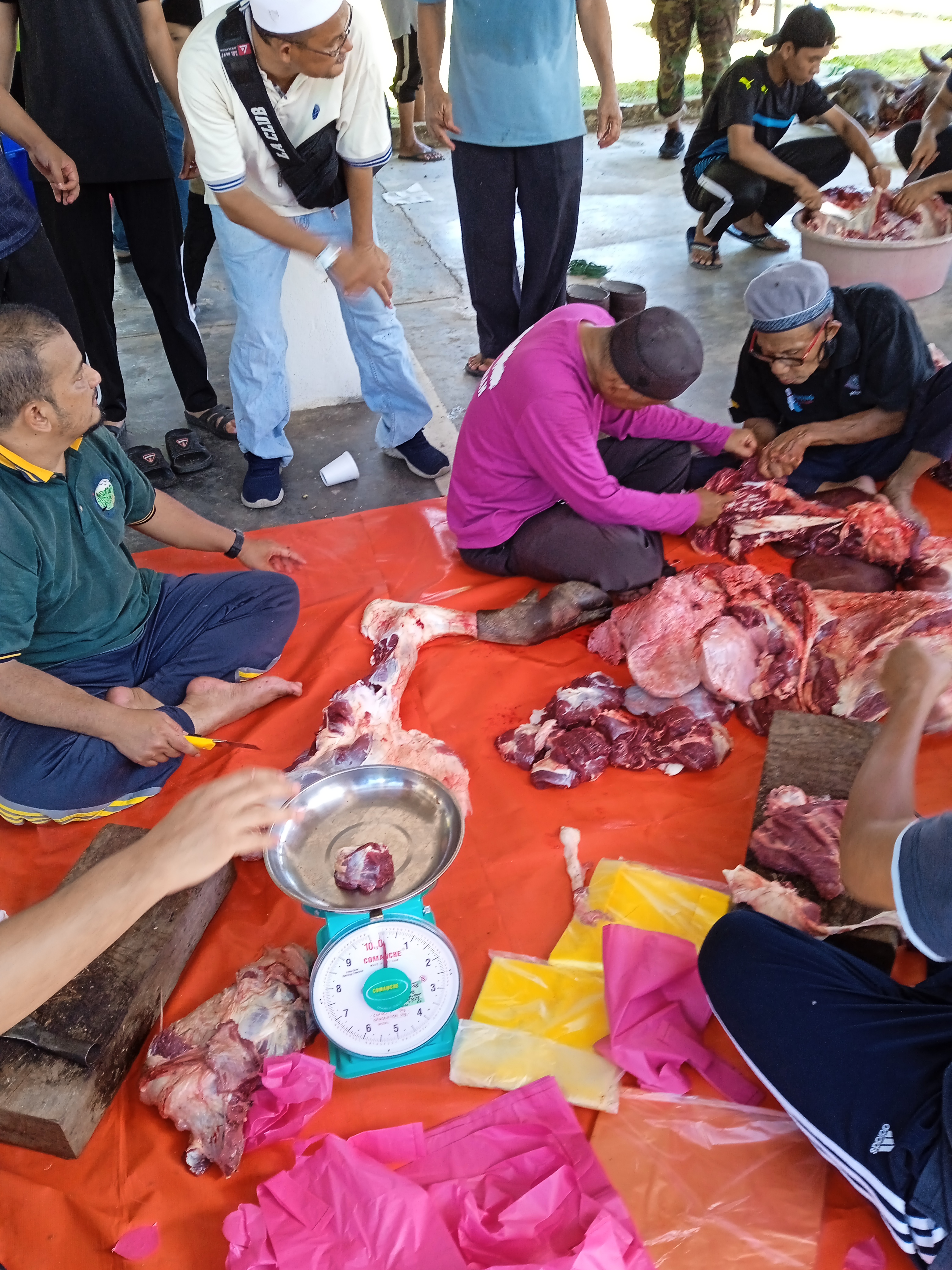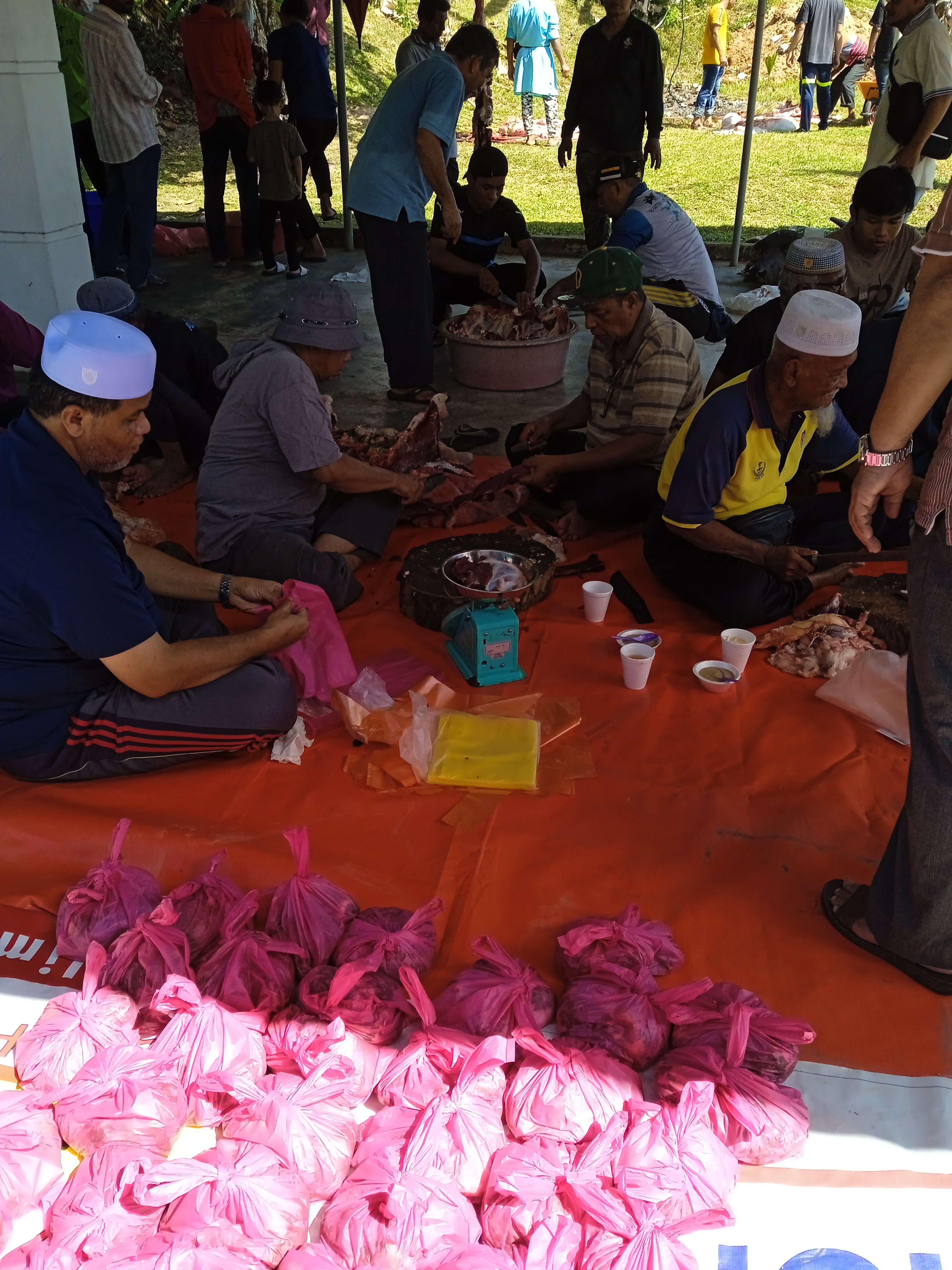 Proses Pembungkusan Agihan Daging Qurban untuk Diserahkan kepada Peserta-peserta, Fakit Miskin dan Orang Ramai |